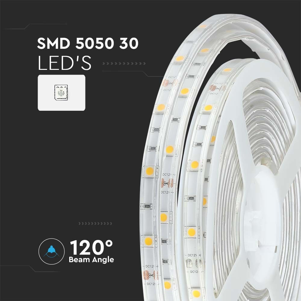 Kültéri LED szalag, 6 w, 3000K, meleg fehér, 500 lm/m, 12V, 120°, CRI>80, IP65, V-TAC, 212145