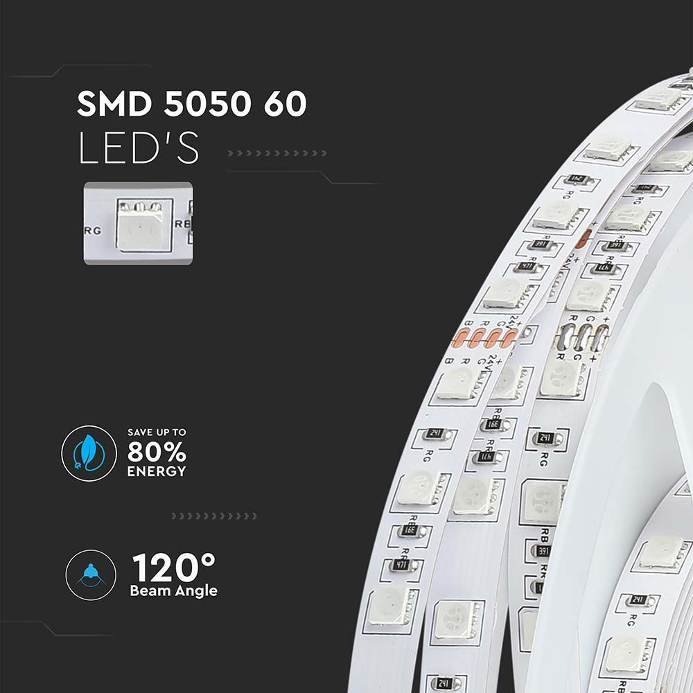 Beltéri LED szalag, 7 w, RGB, 830 lm/m, 12V, 120°, CRI>80, V-TAC, 212591