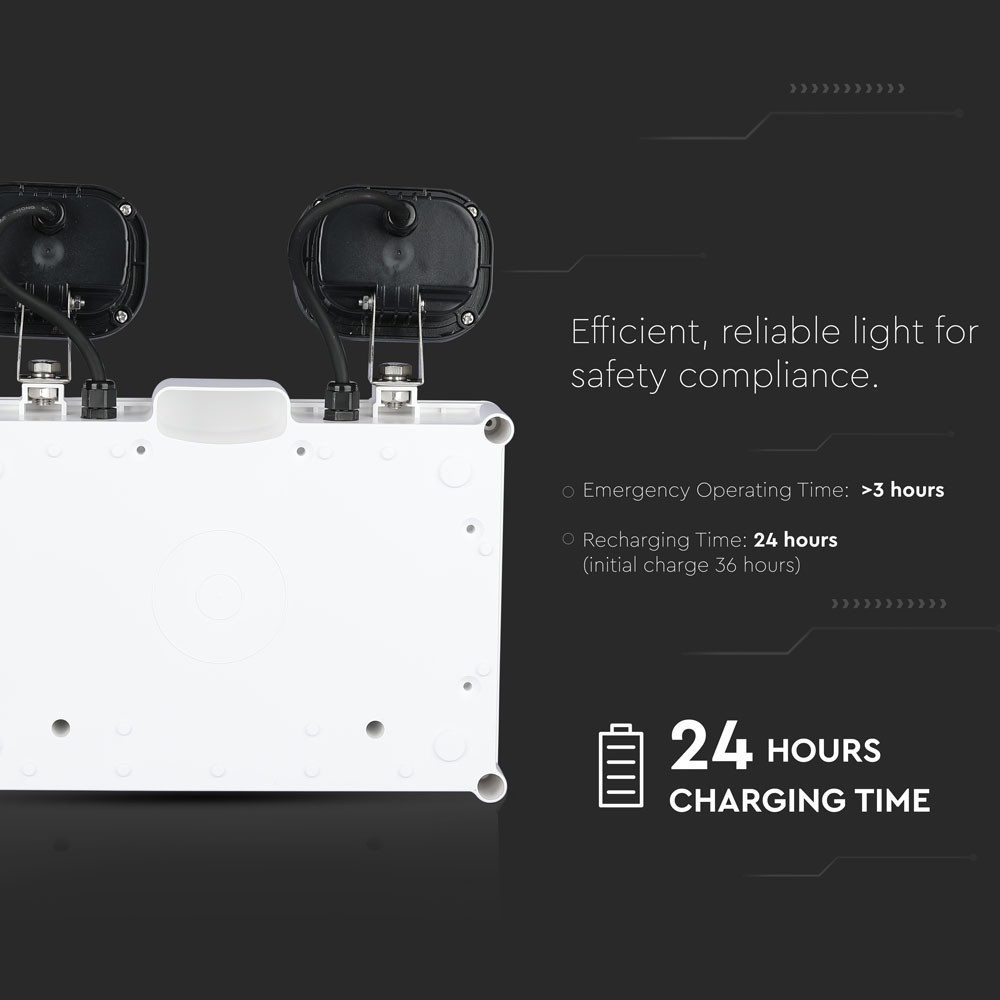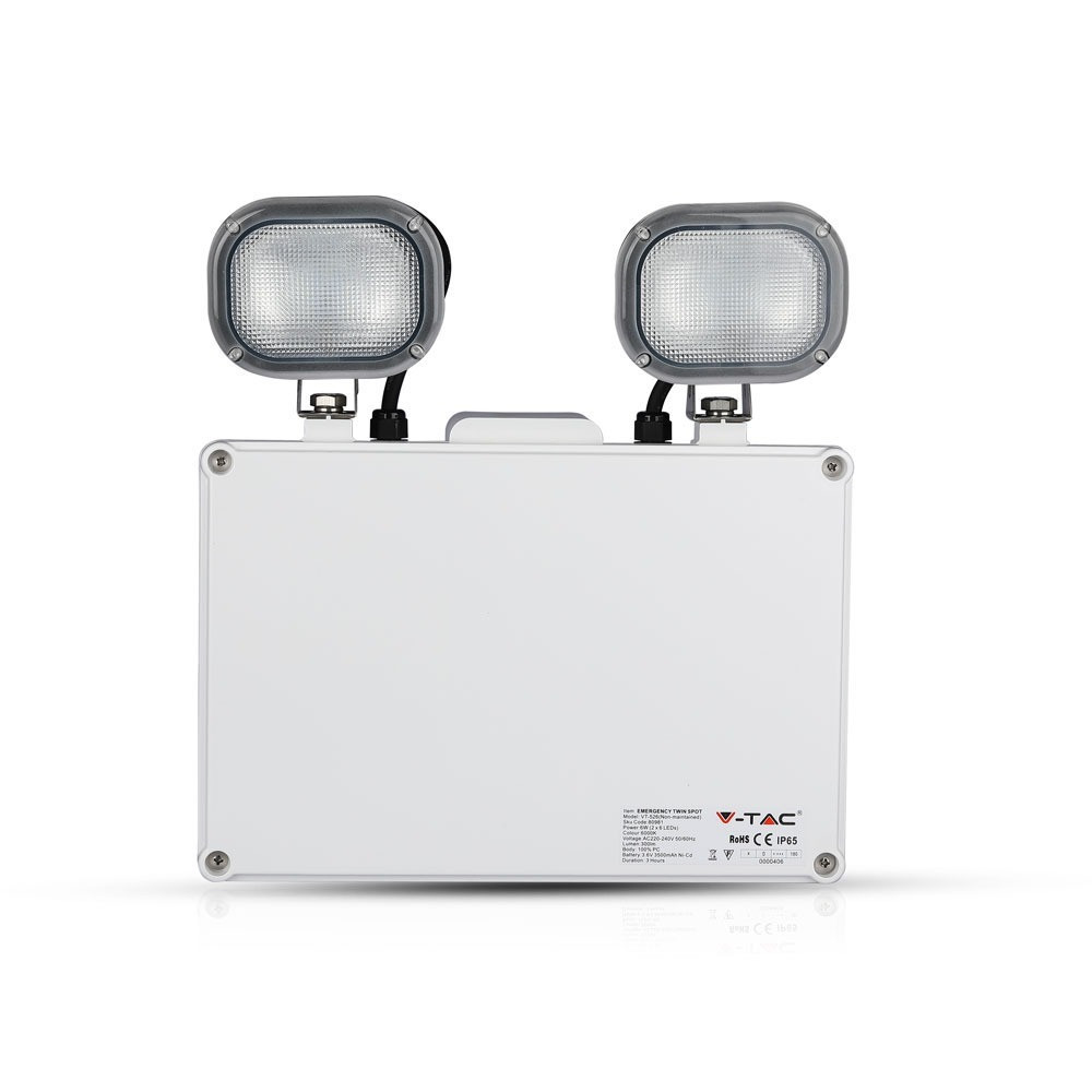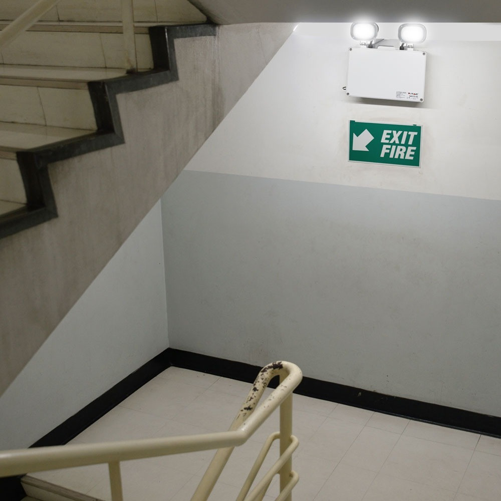 Vészkijárat jelző falra szerelhető LED ikerreflektor, 6w, 6000K, hideg fehér, 300lm, fehér, IP65, V-TAC, 80981