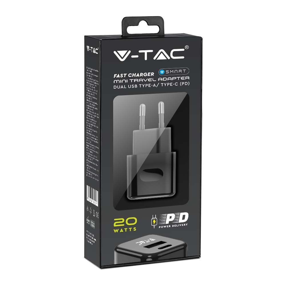 VT-5320 20W-Os Töltőadapter 1 Pd+1 Qc Porttal, Fekete