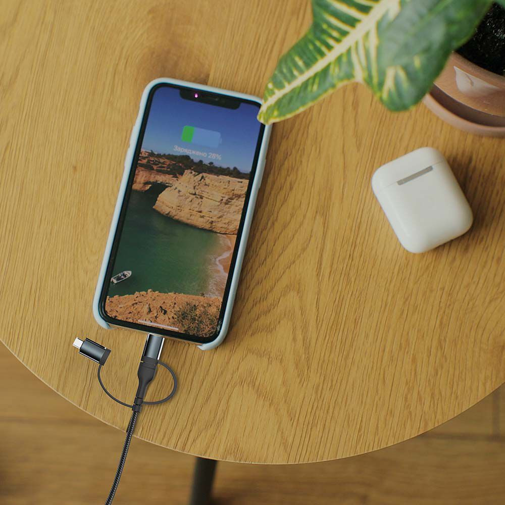 Bemutatjuk a VT-5323 5 az 1-ben töltőkábelt, amely sokoldalú megoldást kínál minden töltési igényre. Ez a multifunkcionális USB-kábel kompakt kialakítású, nagy hatékonyságú, és 3,1 A maximális kimeneti áramot kínál a gyors és megbízható töltés érdekében. 1200 mm-es hosszúságával tökéletes a mindennapi otthoni, irodai vagy útközbeni használatra. A felhasználói kényelmet szem előtt tartva tervezték, ez a kábel több eszköz egyidejű csatlakoztatására is alkalmas, így nélkülözhetetlen kiegészítő a technológiai rajongók számára. Elegáns fekete színe jól illeszkedik bármilyen környezetbe. A VT-5323 strapabíró dobozban érkezik, dobozonként 200 darabos mennyiségben, így kiskereskedelmi és nagykereskedelmi vásárlásra egyaránt alkalmas. Tartós anyagokból készült, ez a töltőkábel tartósságot és hosszú élettartamot ígér, amelyet garancia is alátámaszt a nagyobb nyugalom érdekében. Akár okostelefonját, táblagépét vagy más USB-képes eszközét kell töltenie, a VT-5323 a legjobb töltőeszköz. Élvezze a zökkenőmentes csatlakozást és a gyors töltést ezzel az innovatív termékkel.