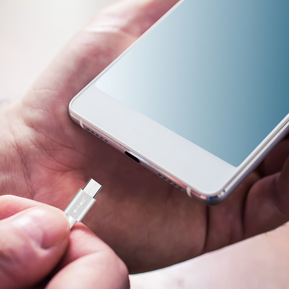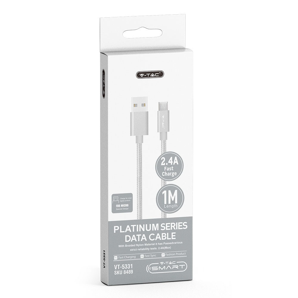 VT-5331 1M Micro Usb Fonott Nejlon Kábel - Ezüst (Platina Széria)