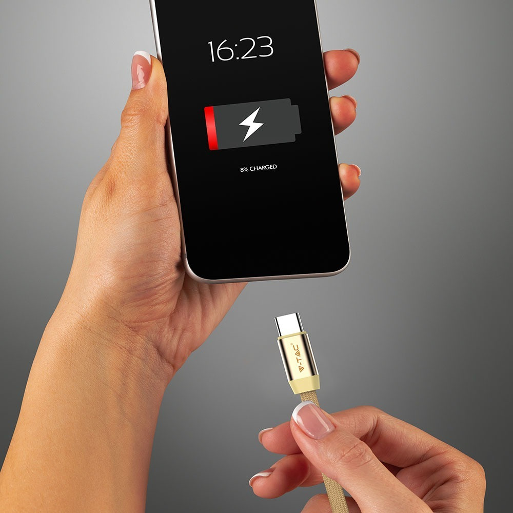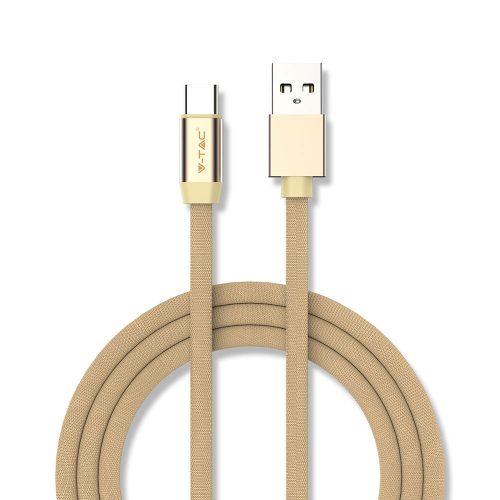 VT-5342 1M-Es C Típusú Usb Fonott Kábel Pamut Anyaggal - Arany (Rubínó Sorozat)