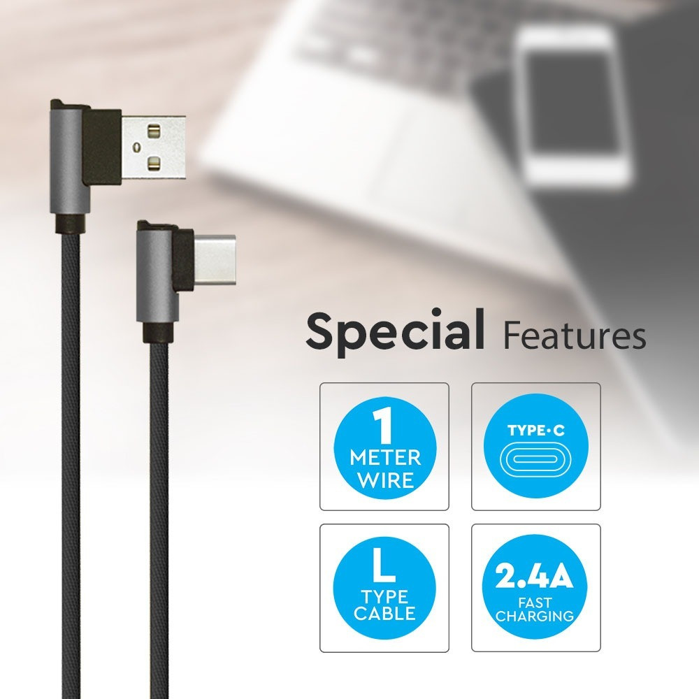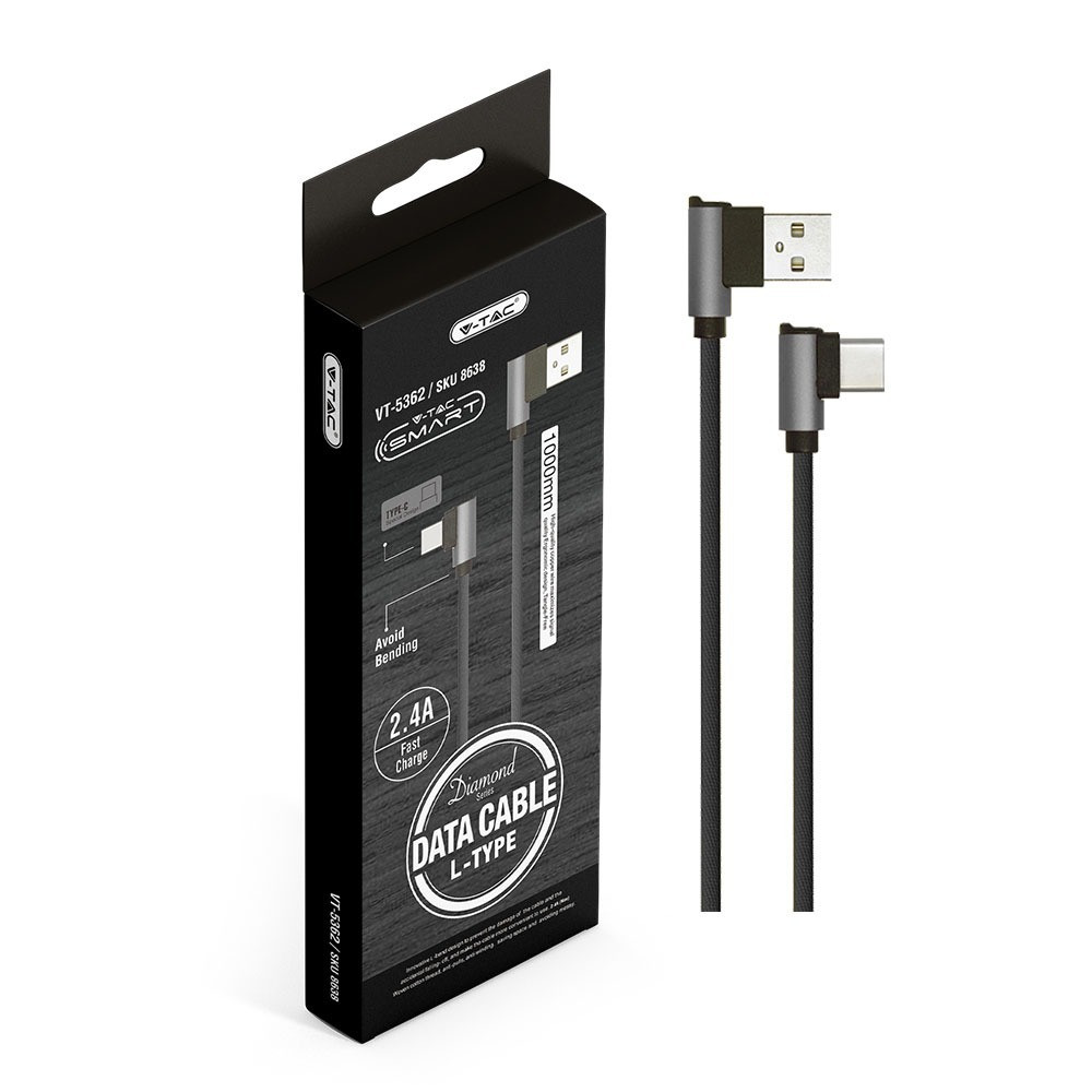 VT-5362 1M-Es Usb-C Kábel L-Típusú - Fekete (Diamond Sorozat)
