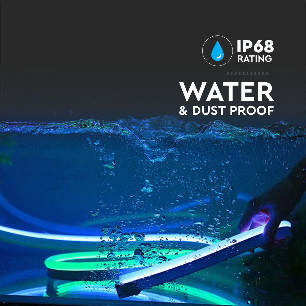 Bemutatjuk a VT-554 Neon Flex LED szalagot, egy kiváló minőségű világítási megoldást, letisztult kialakítással és élénkpiros színnel. Ez a 6,5 W/m teljesítményű, rugalmas lámpa 24 V DC bemenetről működik, és lenyűgöző, 260 lumen/méter fényerővel büszkélkedhet, így erős megvilágítást biztosít különféle alkalmazásokhoz. IP68 tartóssági besorolásának köszönhetően vízálló és porálló, így ideális kültéri és beltéri használatra. Szilikonból készült, ez a Neon Flex szalag hosszú élettartammal és 120°-os sugárzási szöggel rendelkezik, széles fényszórást biztosítva. Kompakt, 8 mm-es szélességével az Ön igényei szerint testreszabható, a vágási méret pedig egyszerű telepítést tesz lehetővé. Ez a nem szabályozható termék 2 év garanciával rendelkezik, és energiatakarékos, így hatékony választás bármilyen világítási projekthez. A VT-554 kényelmes, 10 méteres tekercsben kapható, raklaponként összesen 1500 méter, így elegendő mennyiség áll rendelkezésre nagyobb telepítésekhez is. Könnyű, tekercsenként 0,227 kg-os kialakításának és egyszerű összekapcsolhatóságának köszönhetően gond nélkül létrehozhatja a tökéletes világítási rendszert. Frissítse világítását még ma a VT-554 Neon Flex LED szalaggal.