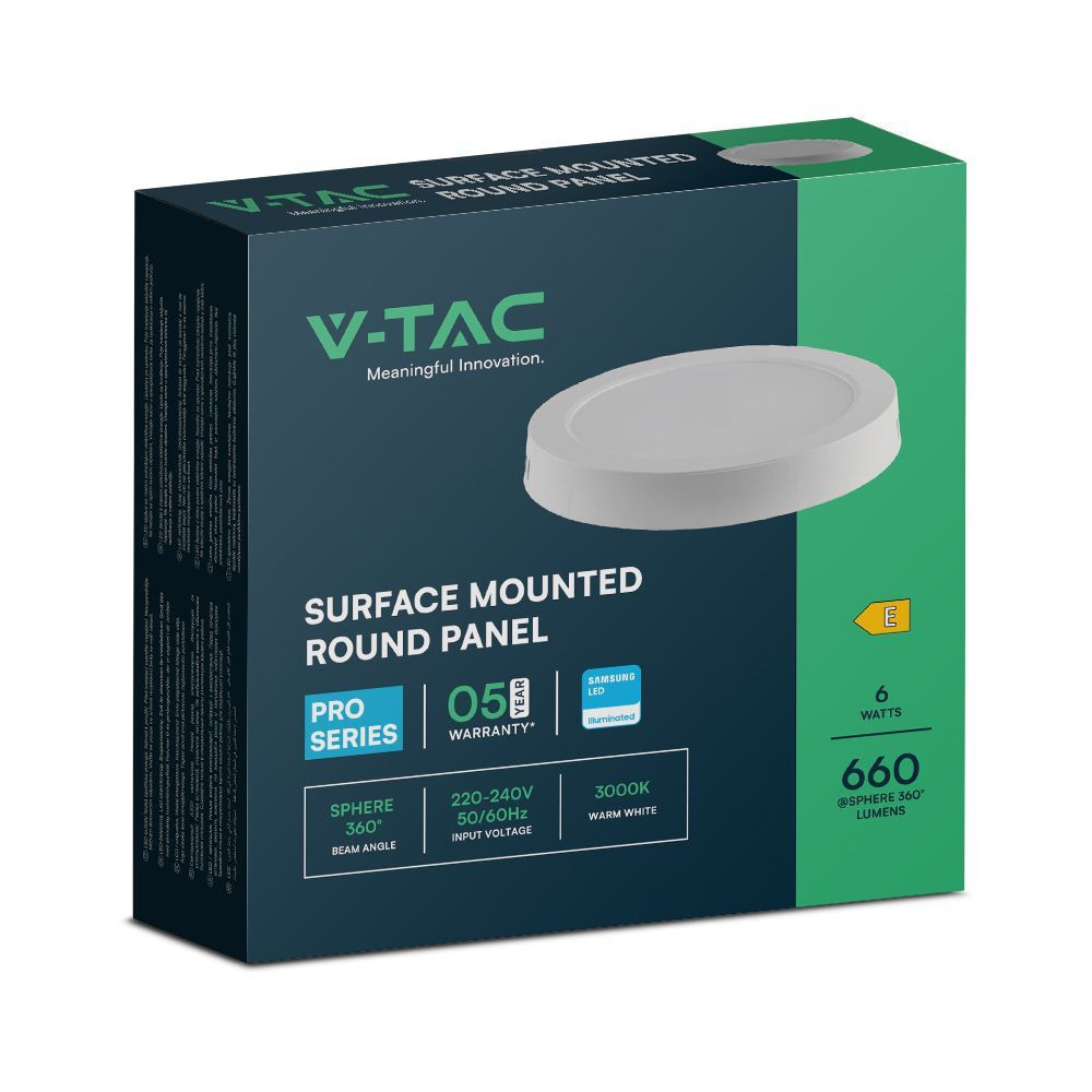 LED mini panel PRO, falon kívüli, 6w, 3000K, meleg fehér, 660lm, 120°, fehér, CRI>80, V-TAC, 78701
