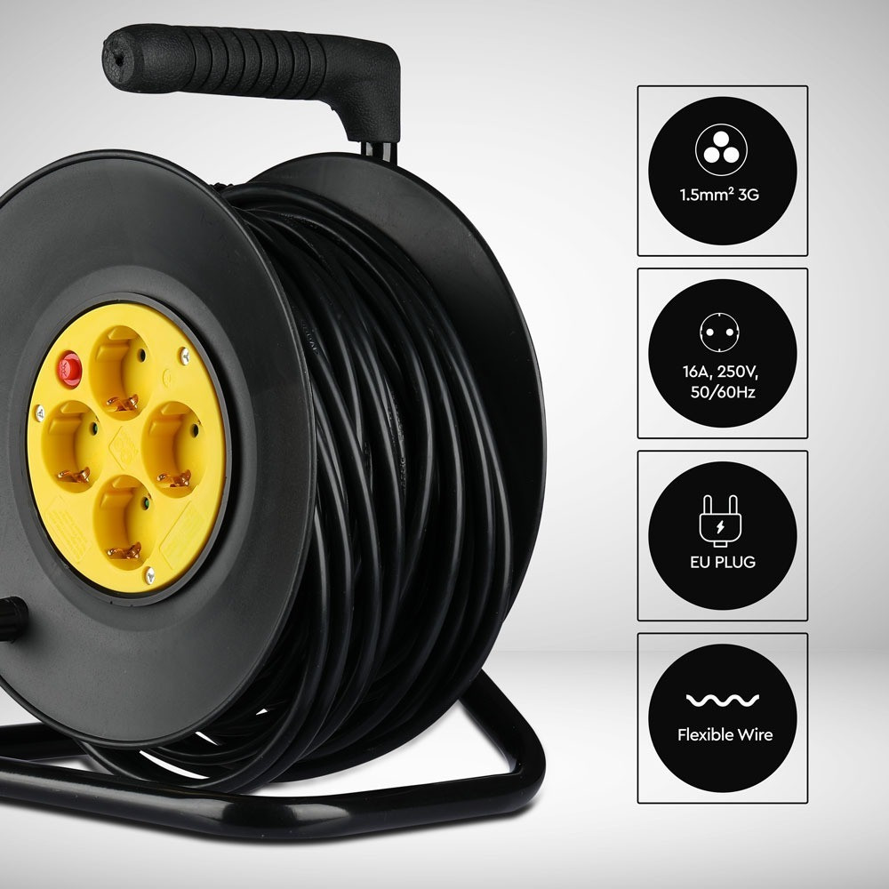 Bemutatjuk a VT-6003 kábeldobot, amelyet a sokoldalú tápellátási igényekhez terveztek. Ez a hosszabbító kábel robusztus kialakítású, 3G1.5MM2 vezetékkonfigurációval és nagyméretű, 25 méteres hosszúsággal rendelkezik, így tökéletes beltéri és kültéri használatra egyaránt. A kompakt, 200 mm x 300 mm x 170 mm méretű ház tartós PP és réz anyagokból készült, így hosszú élettartamot és megbízhatóságot biztosít különféle körülmények között. A 3500 watt maximális teljesítményével és 250 V-on 16 A áramerősség kezelésére képes kábeldob ideális több eszköz hatékony tápellátására. Az ergonomikus kialakítás lehetővé teszi a könnyű kezelést, míg a beépített biztonsági funkciók megakadályozzák a túlterhelést és biztosítják a biztonságos működést. Könnyű, 3,67 kg-os súlya rendkívül hordozhatóvá teszi, és az 1 darabos dobozmennyiséggel könnyen elfér a tárolásban vagy a szállításban. A VT-6003 IP20-as porvédelemmel rendelkezik, és akár 50°C-os üzemi hőmérsékletet is ellenáll. Sokoldalú megoldás lakossági és kereskedelmi alkalmazásokhoz egyaránt, garantáltan könnyedén és hatékonyan kielégíti az energiaelosztási igényeit.