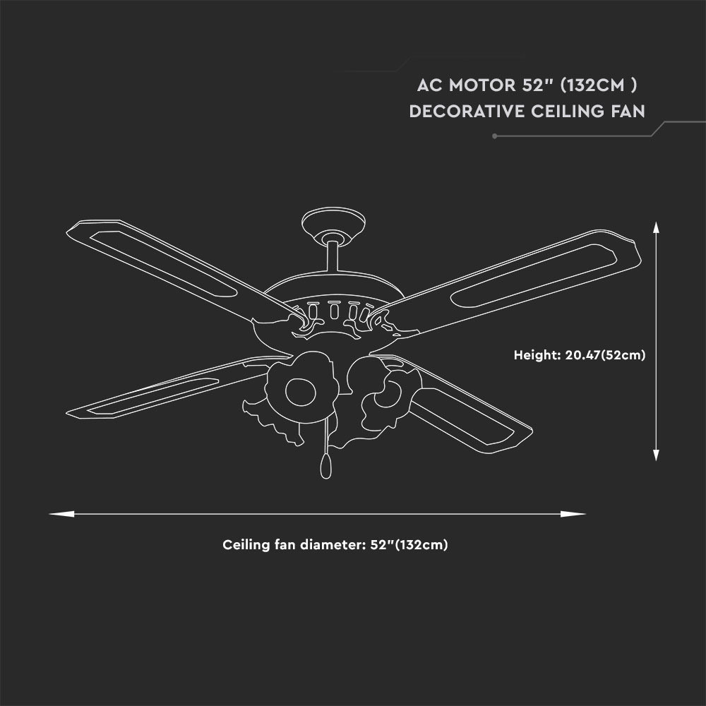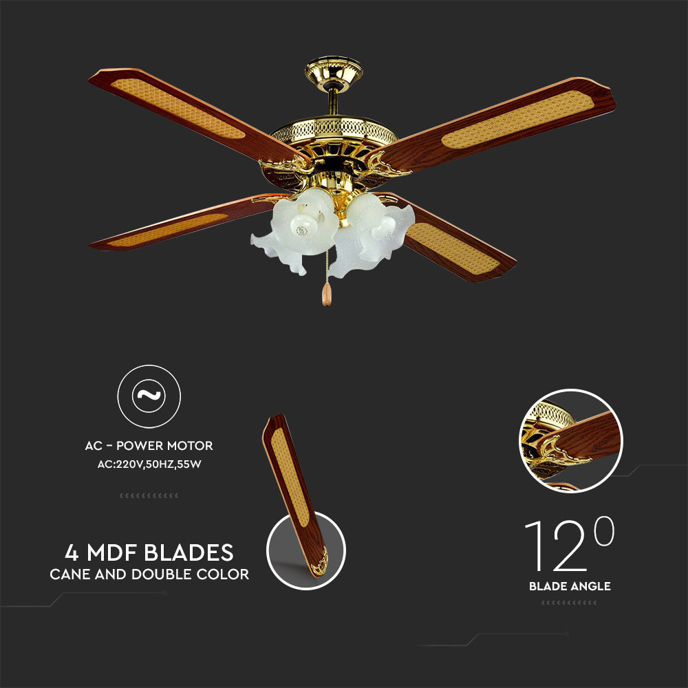 VT-6056-4 55 W-Os Mennyezeti Ventilátor 4 Izzóval - Láncos Vezérlés - 4 Pengés - Váltakozó Áramú Motor