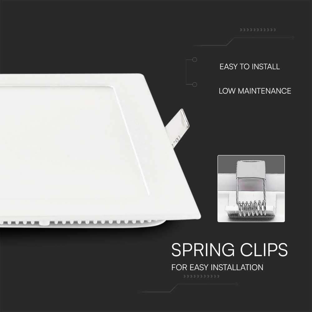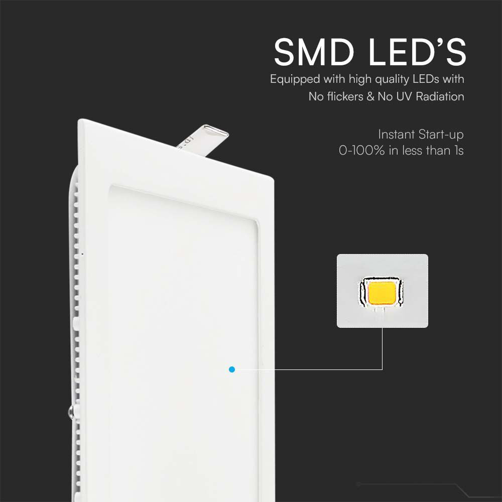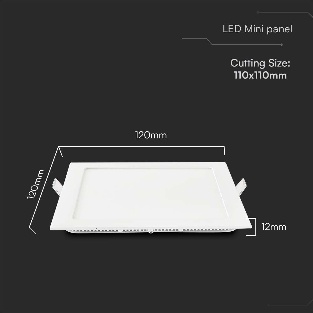 LED mini panel prémium négyzet alakú, süllyesztett, 6w, 4000K, természetes fehér, 490lm, 120°, fehér, CRI>80, V-TAC, 214864