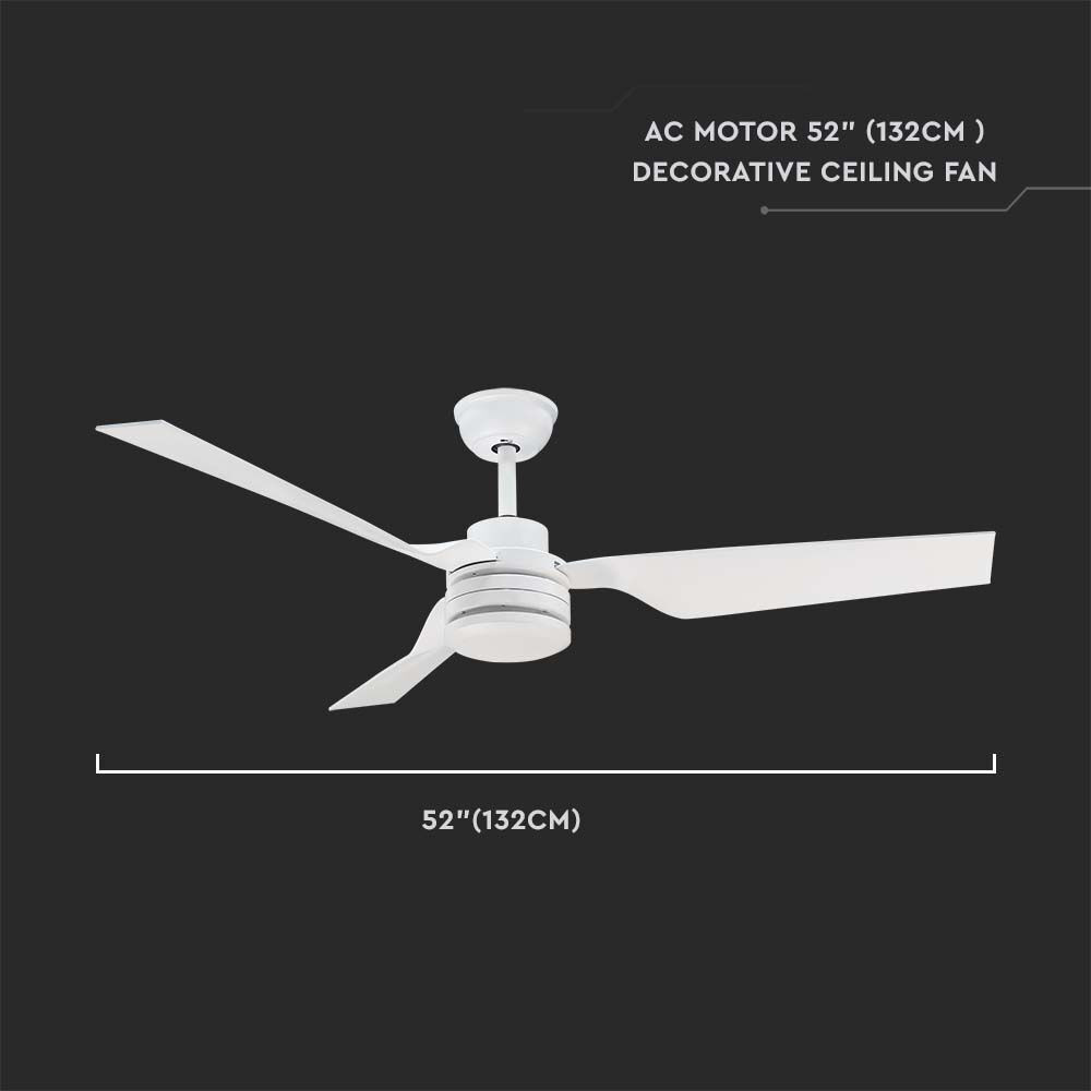 VT-6552-3 65 W-Os Mennyezeti Ventilátor, Fehér Test, Rf Vezérlés, 3 Fehér Lapátos, Váltóáramú Motor (52 Hüvelykes)
