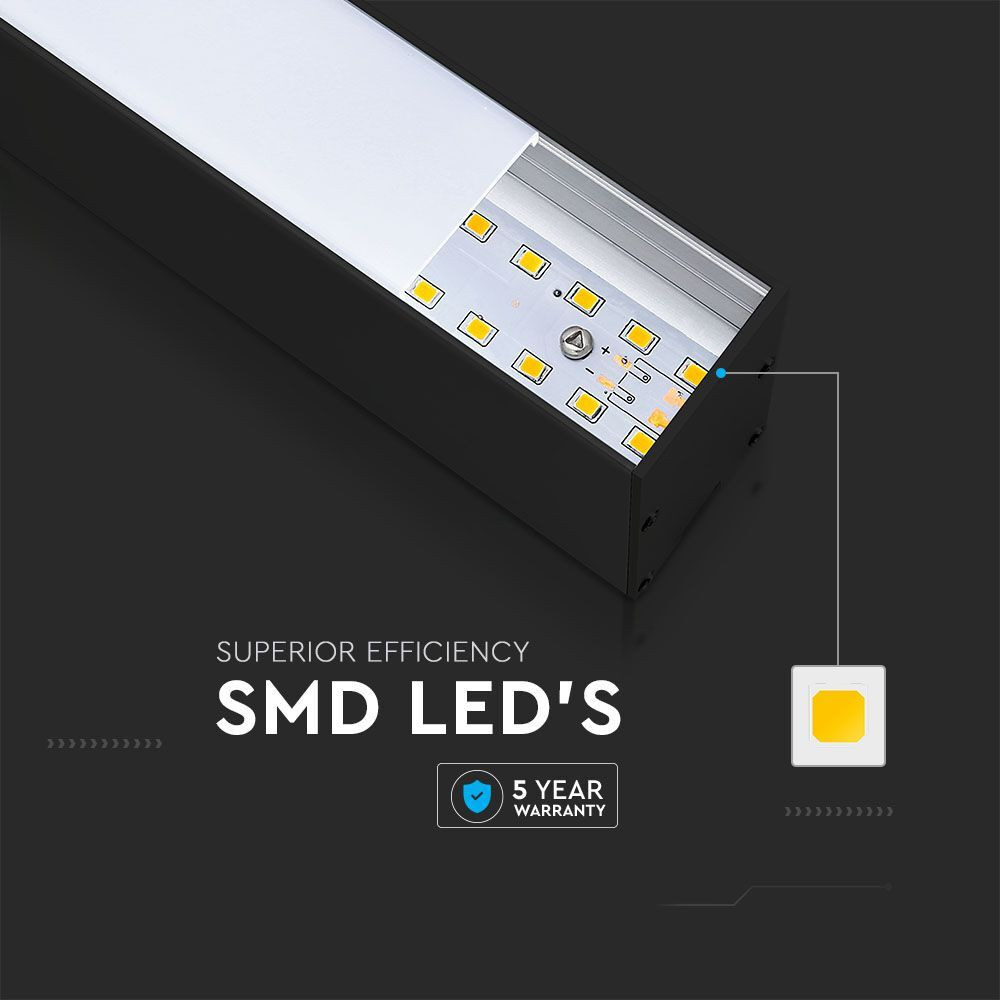 Függesztett lineáris LED lámpatest, 40w, 6400K, hideg fehér, 3270lm, 120°, fekete, CRI>80, 1194mm, V-TAC, 21600