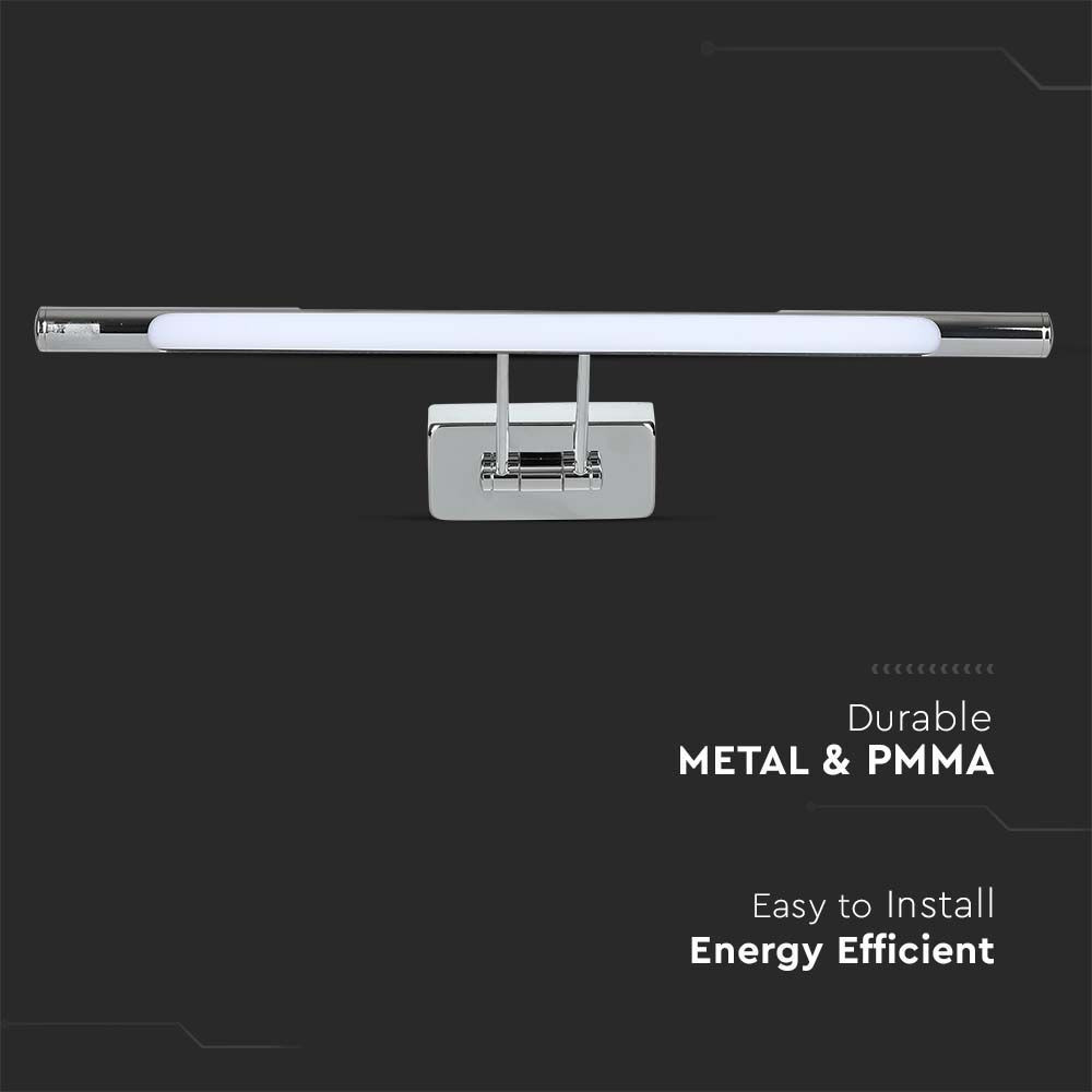 Fali tükör lámpa, 9w, 3000K, meleg fehér, 550lm, 120°, króm, CRI>80, V-TAC, 213985