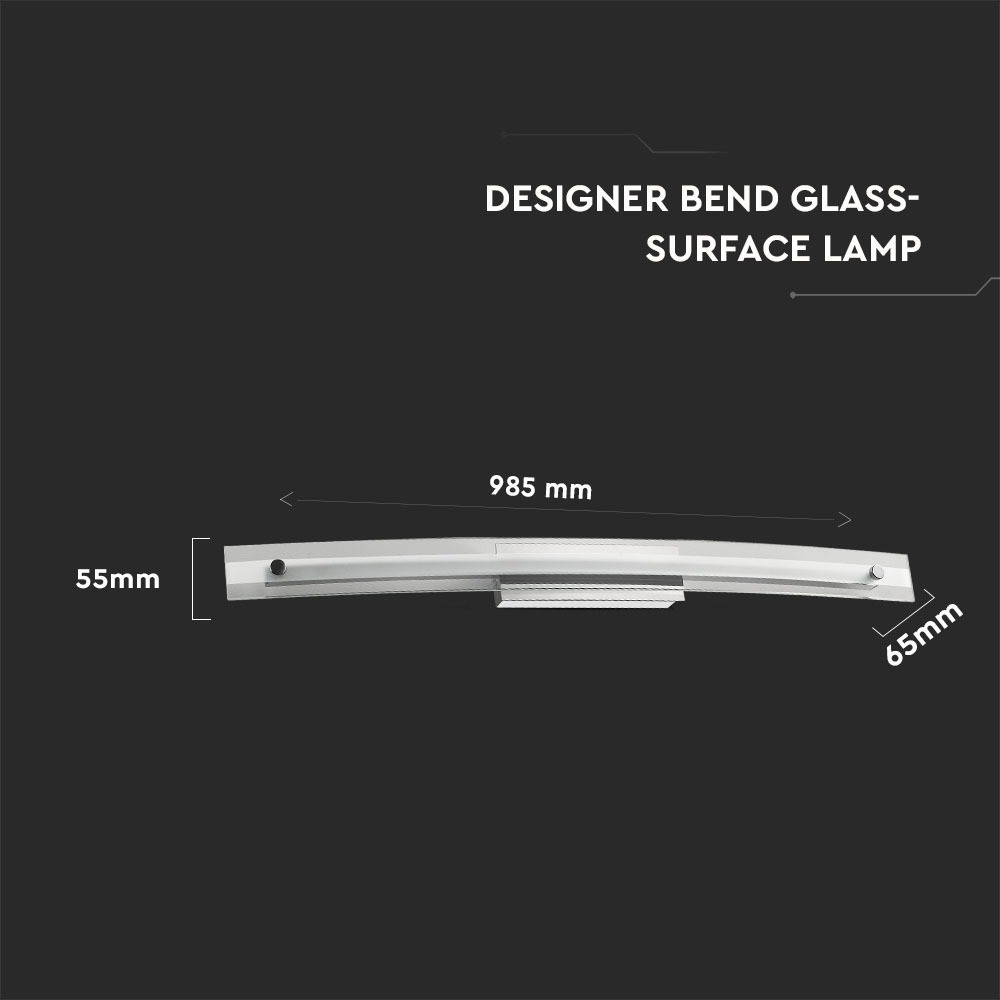 VT-7019 18W Dizájner Hajlított Üveg Fali Lámpa - Króm 4000K Mé: 985mm