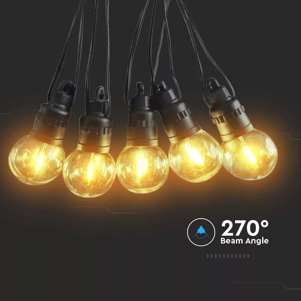 Szolár LED fényfüzér távirányítóval, 12 db izzó, 0,5w, 3000K, meleg fehér, 300lm, 270°, IP44, V-TAC, 7804