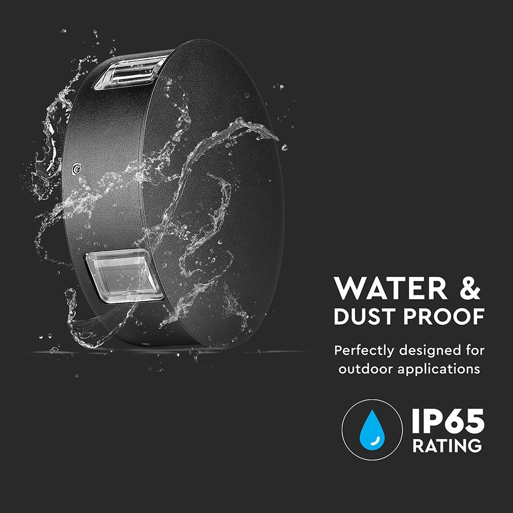 LED fali lámpa 4 irányú világítás kerek IP65, 4w, 3000K, meleg fehér, 440lm, 360°, fekete, CRI>80, V-TAC, 8215