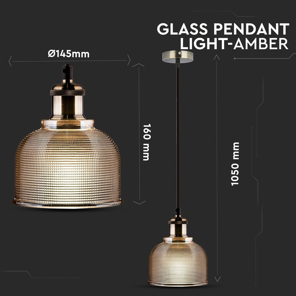 Függeszték, üvegfém, E27, borostyán, V-TAC, 3732