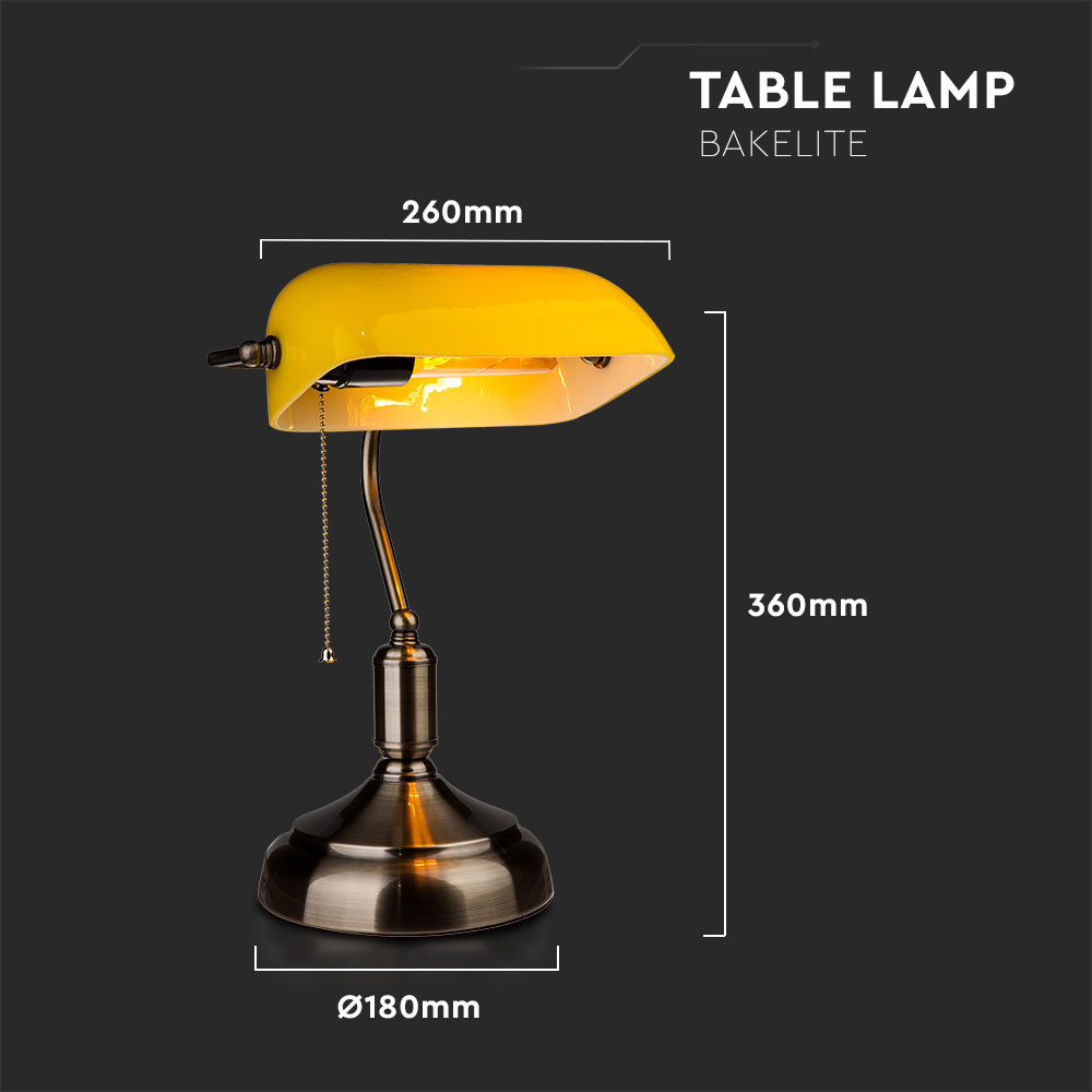 Világítsd meg otthonod a VT-7151 Banker bakelit asztali lámpával. Élénk sárga árnyalatú lámpa, amely az üveg és a fém stílusos keverékét ötvözi, így tökéletes bármilyen modern enteriőrbe. Az E27-es foglalat számos izzóval kompatibilis, maximálisan 60 wattos terheléssel. 260 mm széles, 180 mm hosszú és 360 mm magas, így zökkenőmentesen illeszkedik az asztalra vagy az éjjeliszekrényre. IP20-as besorolása biztosítja a beltéri használatra való alkalmasságot, míg a letisztult kialakítás kiemelkedő darabjává teszi bármely helyiségben. A lámpa nagy, 1500 mm-es vezetékkel rendelkezik, amely rugalmas elhelyezést tesz lehetővé. Az 5 év garanciával rendelkező VT-7151 nemcsak esztétikus, hanem tartós is. Fokozd a világítási élményt ezzel az elegáns, energiatakarékos lámpával.