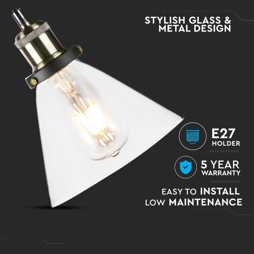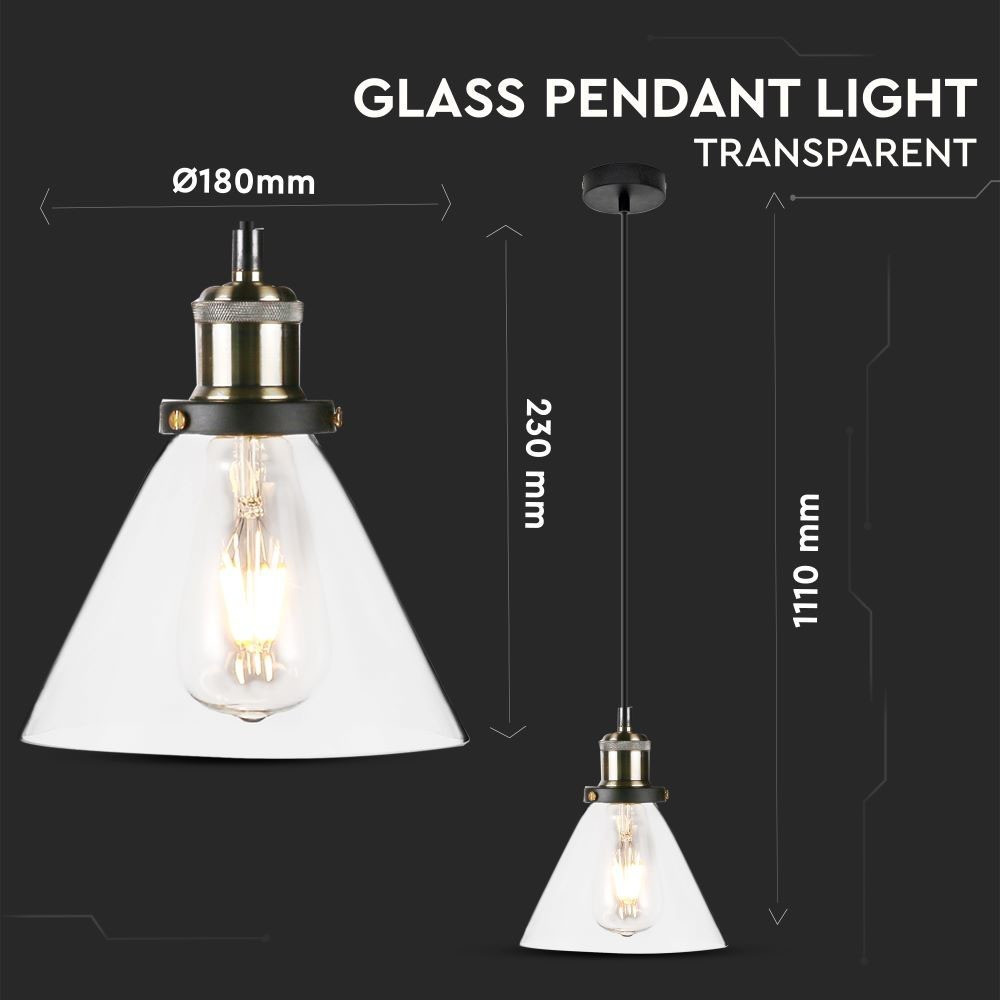 Függeszték, üvegfém, E27, átlátszó, V-TAC, 3738