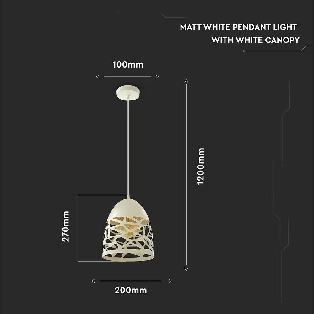 VT-7200 Matt Fehér Függőlámpa Fehér Erőborítóval - E27