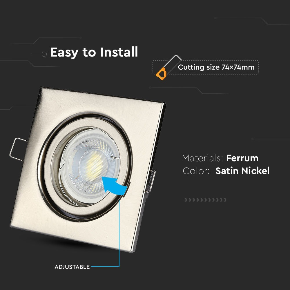 LED spotlámpa keret négyzet alakú, GU10, szatén nikkel, V-TAC, 3473
