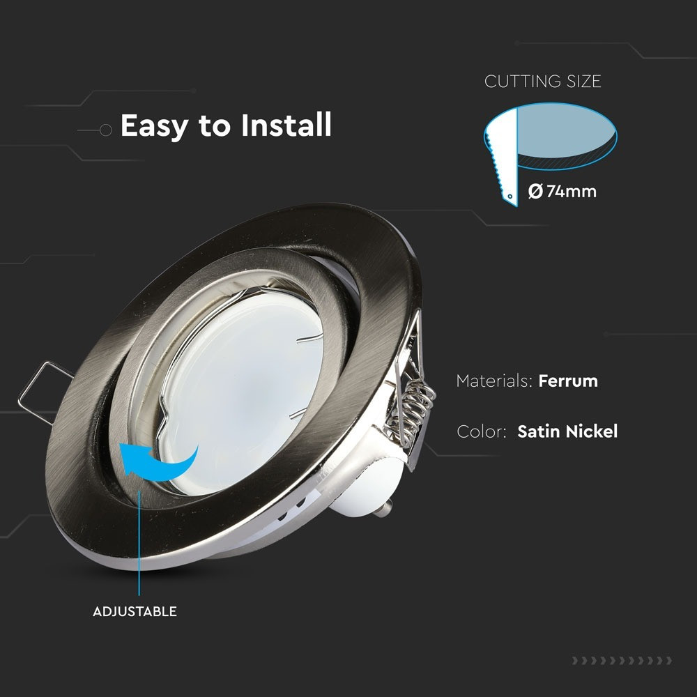 LED spotlámpa keret kerek, GU10, szatén nikkel, V-TAC, 3470