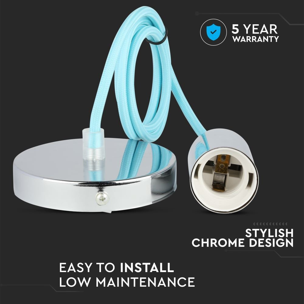 Króm függeszték, E27, világoskék vezetékkel, V-TAC, 3787