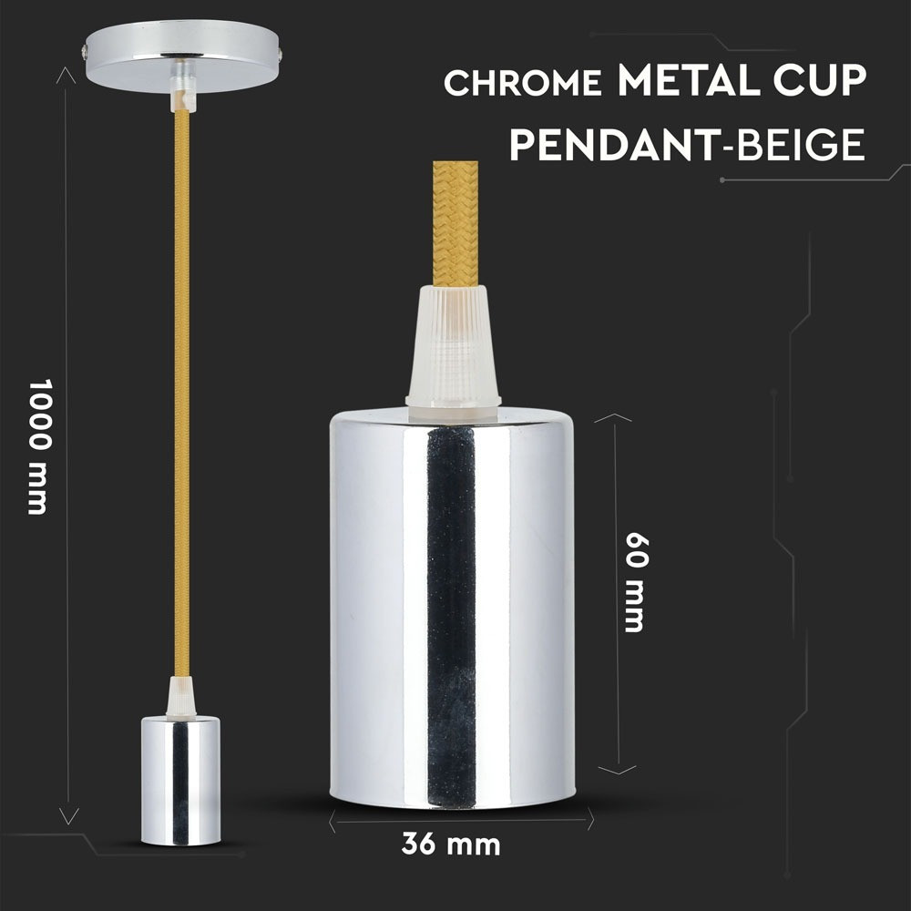Króm függeszték, E27, bézs vezetékkel, V-TAC, 3794