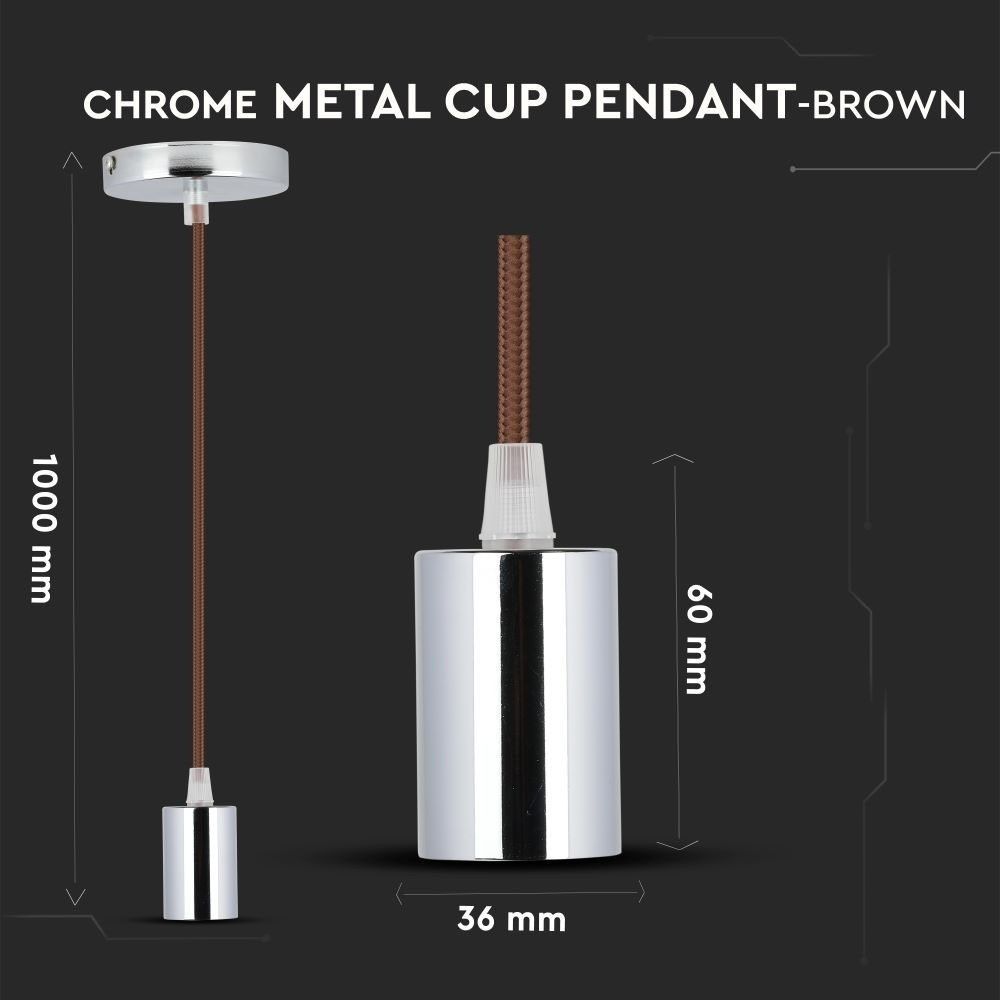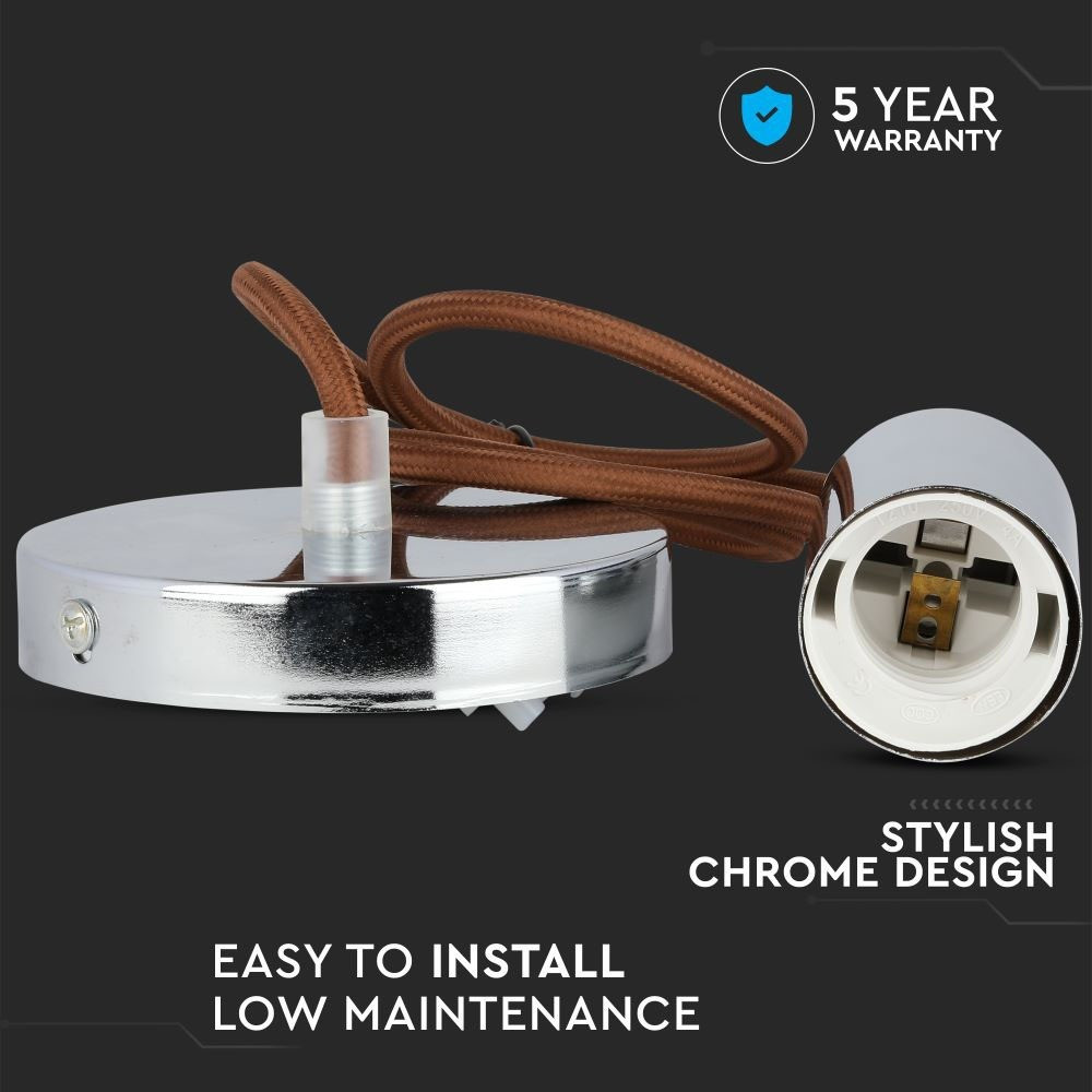 Króm függeszték, E27, barna vezetékkel, V-TAC, 3784