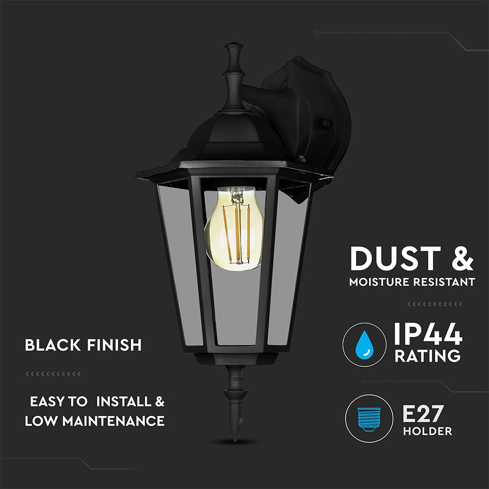 Kültéri fali lámpa, E27, matt fekete, IP44, V-TAC, 7068
