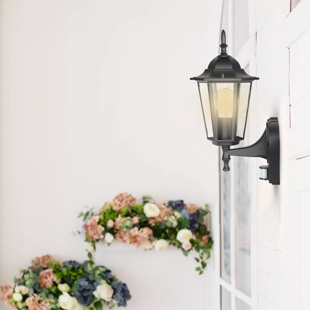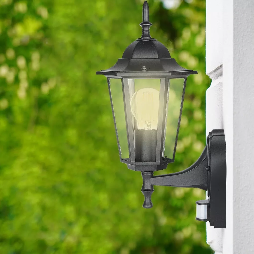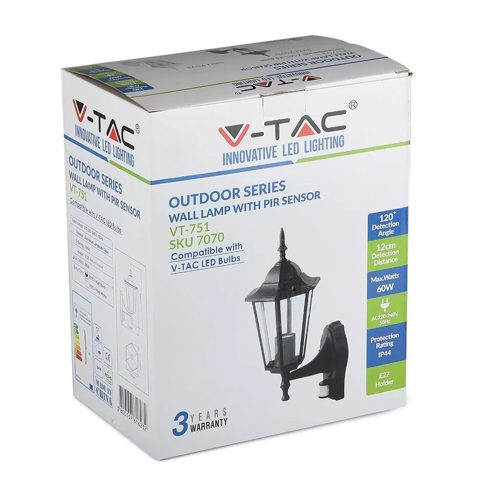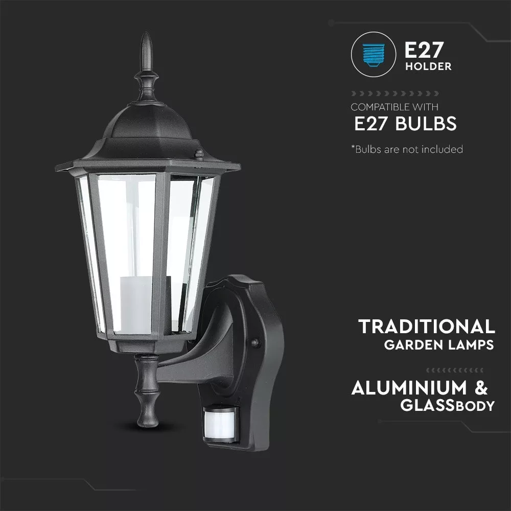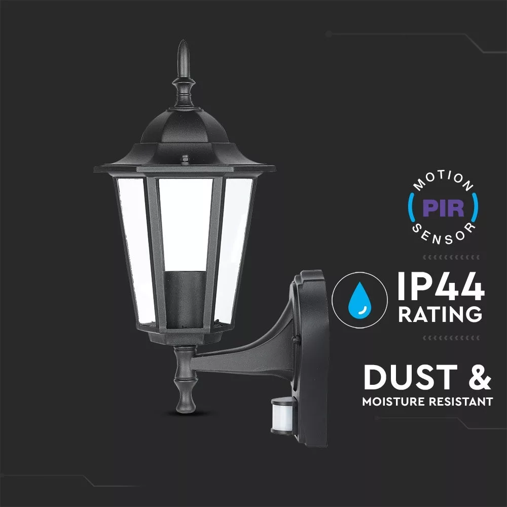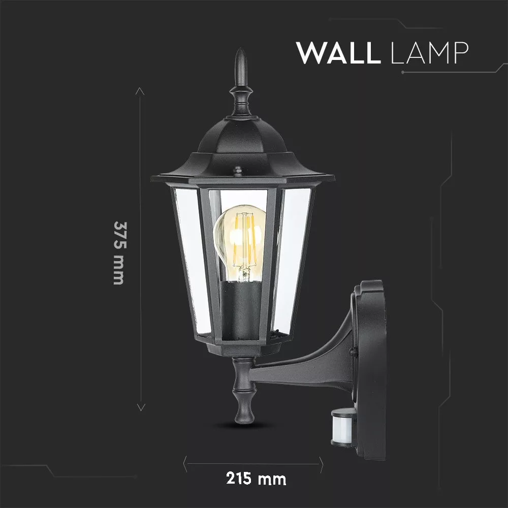 VT-751 E27 Fali Lámpa Érzékelővel - Matt Fekete