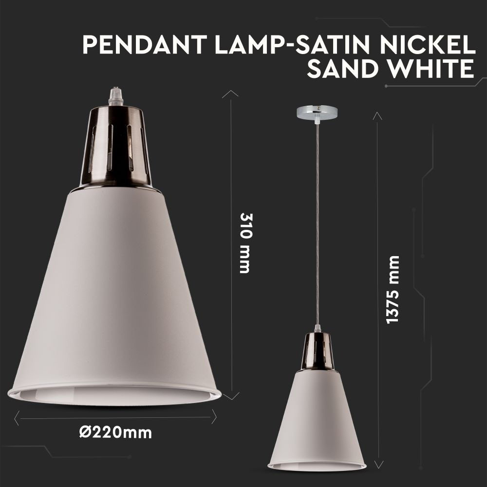 VT-7520 60W Függőlámpa - Szatén Nikkel + Homokfehér - E27