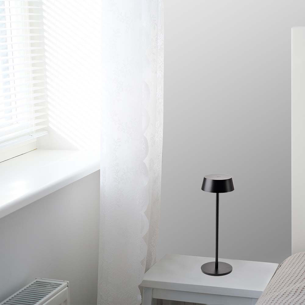 Újratölthető asztali lámpa, 2w, 3000K, meleg fehér, 200lm, 180°, fekete, dimmelhető, IP54, V-TAC, 7690