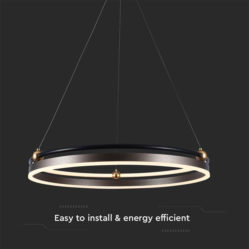 Bemutatjuk a VT-7579 30W-os LED-es függesztéket, egy stílusos és funkcionális világítási megoldást, amely tökéletes a modern terekbe. Ez az egygyűrűs csillár meleg fehér fényt bocsát ki 3000K színhőmérséklettel, így otthonos hangulatot teremt bármely helyiségben. A 3600 lumenes nagy teljesítményű lámpa kiváló megvilágítást biztosít, miközben fokozza a dekorációt. A kávészínű testtel és elegáns, kerek formával ellátott VT-7579 számos környezetbe illik. 1100 mm-es hosszúsága és 625 mm-es szélessége szemet gyönyörködtető központi elemmé teszi, míg az innovatív SMD LED chip technológia energiahatékonyságot és hosszú élettartamot biztosít akár 20 000 órás élettartammal. Ez a lámpa könnyen telepíthető és IP20-as besorolású, így beltéri használatra alkalmas. 220-240V AC feszültségről működik, csendesen és villódzásmentesen működik. Bár nem szabályozható, a lámpa 120°-os sugárzási szöge széles lefedettséget biztosít. Élvezd a nyugalmat a 2 év garanciával. A kényelem jegyében tervezett VT-7579 10 darabos kiskereskedelmi csomagban kapható, így tökéletes otthoni felújításhoz vagy kereskedelmi projektekhez. Emeld magasabb szintre a világítási élményt még ma a VT-7579 30 W-os LED-es függőlámpával.