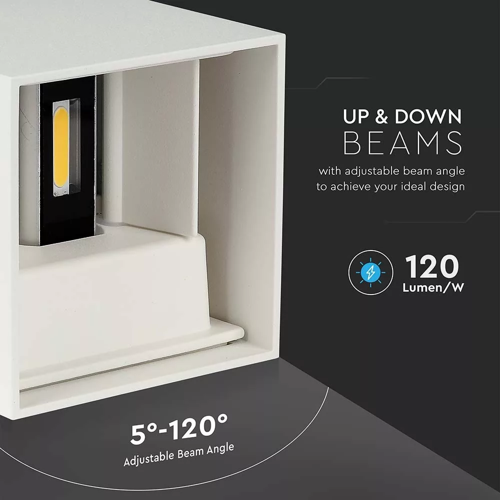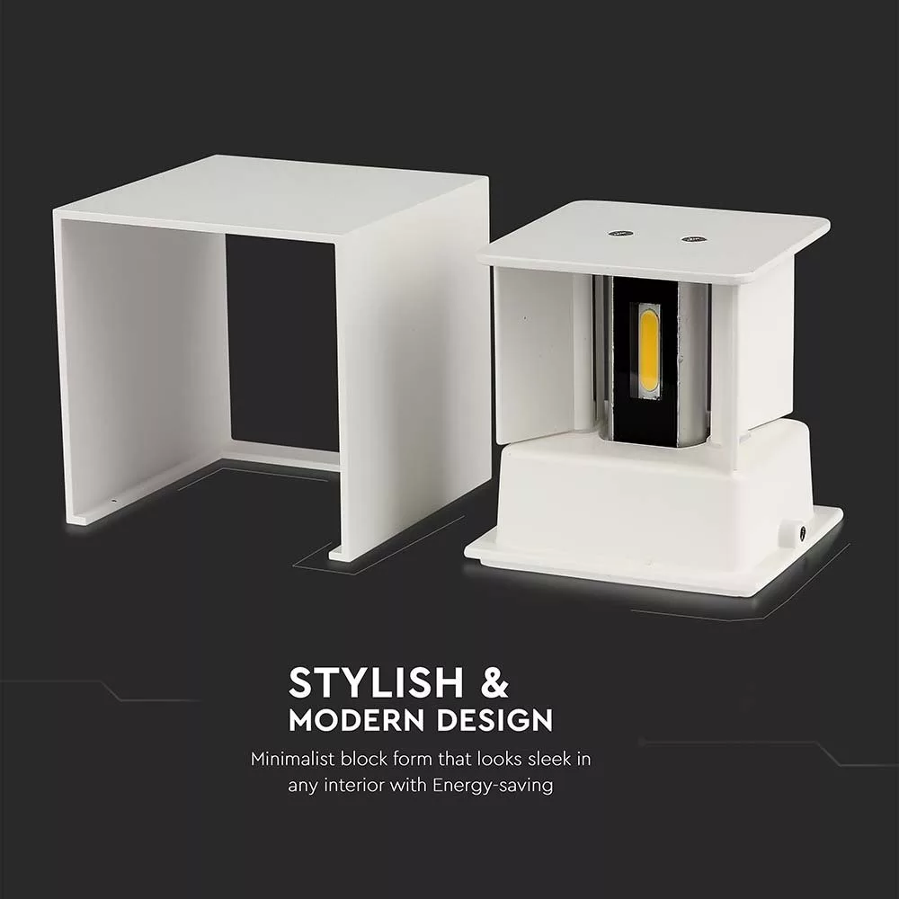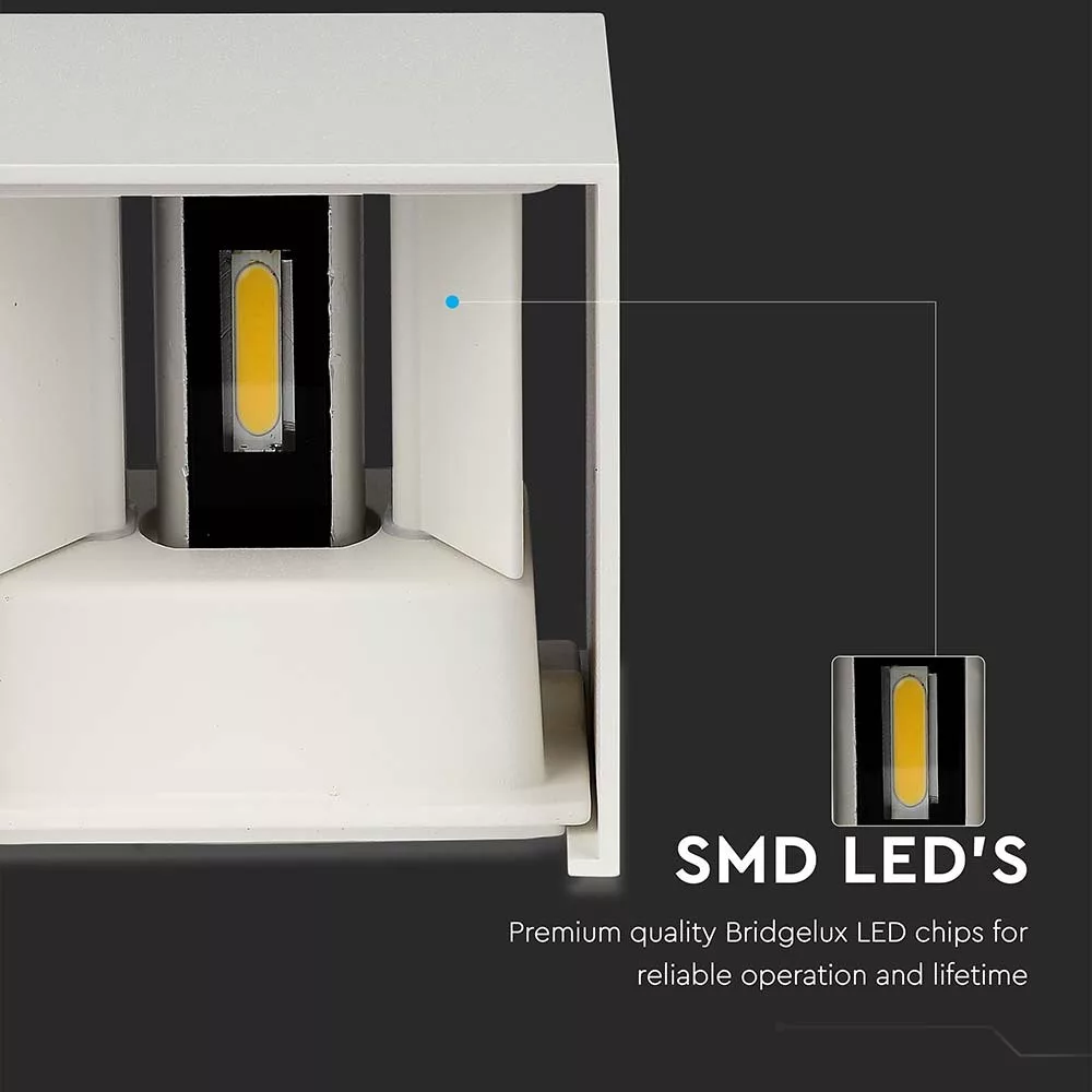 LED fali lámpa kétirányú négyzet alakú Bridgelux, 11w, 4000K, természetes fehér, 1360lm, 120°, fehér, CRI>80, IP65, V-TAC, 218528