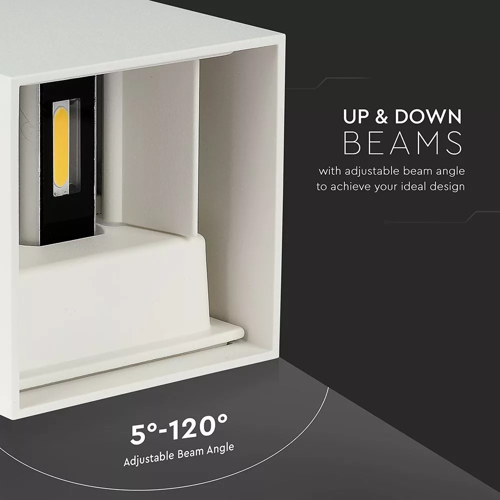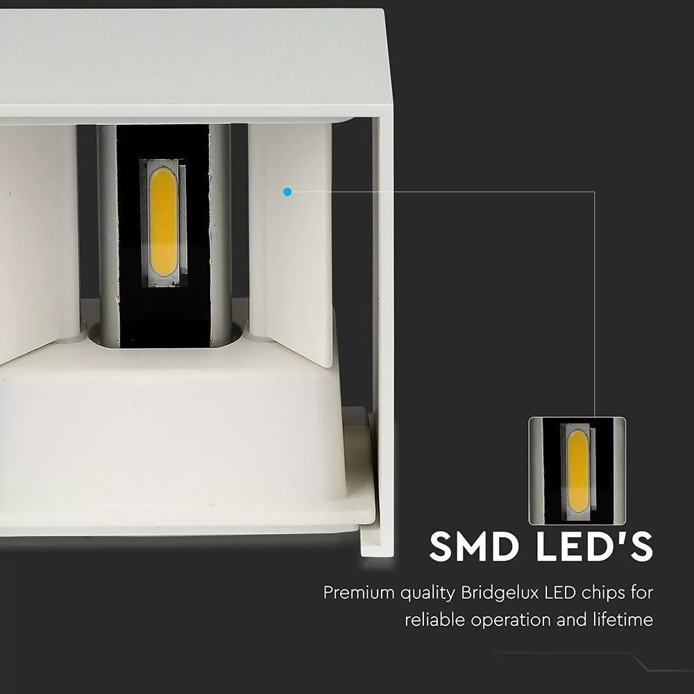 LED fali lámpa kétirányú négyzet alakú Bridgelux, 11w, 3000K, meleg fehér, 1360lm, 120°, fehér, CRI>80, IP65, V-TAC, 218527