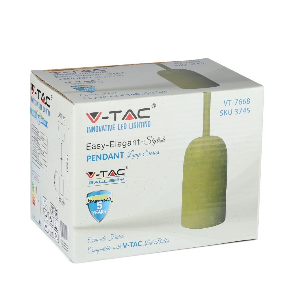Világítsd meg otthonod a VT-7668 E27 beton függőlámpával élénk sárga színben. Ez a stílusos függőlámpa tartós beton testtel rendelkezik, amely ötvözi a modern esztétikát a funkcionalitással. Kompakt kialakításának köszönhetően, 150 mm hosszú, 100 mm széles és 120 mm magas, tökéletes különféle környezetekbe, beleértve a lakossági és kereskedelmi tereket is. Függesztett szereléshez tervezték, ez a függőlámpa E27-es izzókkal kompatibilis, és maximálisan 60 watt terhelést támogat. A modern hangulat megteremtéséhez ideális VT-7668 hasznos fényáramot kínál, biztosítva a környezet jó megvilágítását, miközben energiahatékony is. Az IP20 besorolás beltéri használatra való alkalmasságot jelez, míg a sárga felület színfoltot ad, amely bármely szoba dekorációját feldobhatja. A 40 darabos dobozos kiszerelés és a könnyű szállítás érdekében raklaponkénti csomagolás révén ez a termék praktikus és stílusos is bármilyen világítási projekthez.