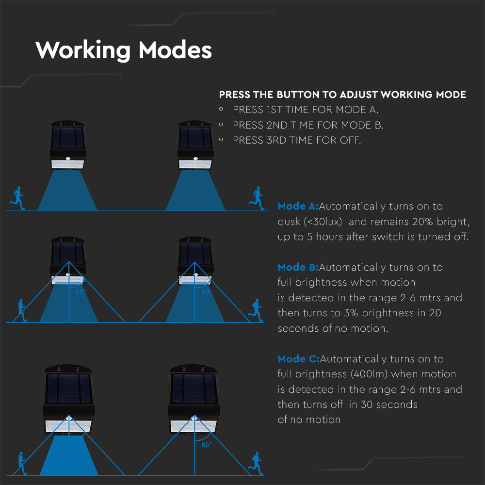 Bemutatjuk a VT-768 3W-os LED-es napelemes fali lámpát, amelyet kültéri tereinek hatékony megvilágítására terveztek. Ez a karcsú fali lámpa 4000K (nappali fehér) és 3000K (meleg fehér) kettős színhőmérséklettel rendelkezik, így tökéletes hangulatot teremt bármilyen környezetben. 33 lumenes nagy fényerejével és lenyűgöző 60°-os sugárzási szögével széleskörű megvilágítást biztosít. Tartós ABS és PC anyagokból készült, a VT-768 IP65 besorolással rendelkezik, így ellenáll a zord időjárási körülményeknek. Hosszú, 20 000 órás élettartammal rendelkezik, így megbízható választás világítási igényeihez. A beépített napelem 6-7 órán belül feltölti a beépített 3,7 V-os, 2000 mAh-s lítium-ion akkumulátort, így optimális körülmények között akár 24 órás megvilágítást biztosít. PIR-érzékelővel és 2-6 méteres érzékelési tartománnyal felszerelt, ez a lámpa akár 6-7 méteres mozgásra is aktiválódik, így biztosítva a biztonságot és a kényelmet. A VT-768 könnyen telepíthető és zökkenőmentesen működik -25°C és +50°C között. A 2 év garanciával és az energiahatékonyság iránti elkötelezettséggel a VT-768 napelemes fali lámpa ideális választás azoknak a háztulajdonosoknak, akik szeretnék kültéri területeiket megvilágítani, miközben minimalizálják az energiaköltségeket.