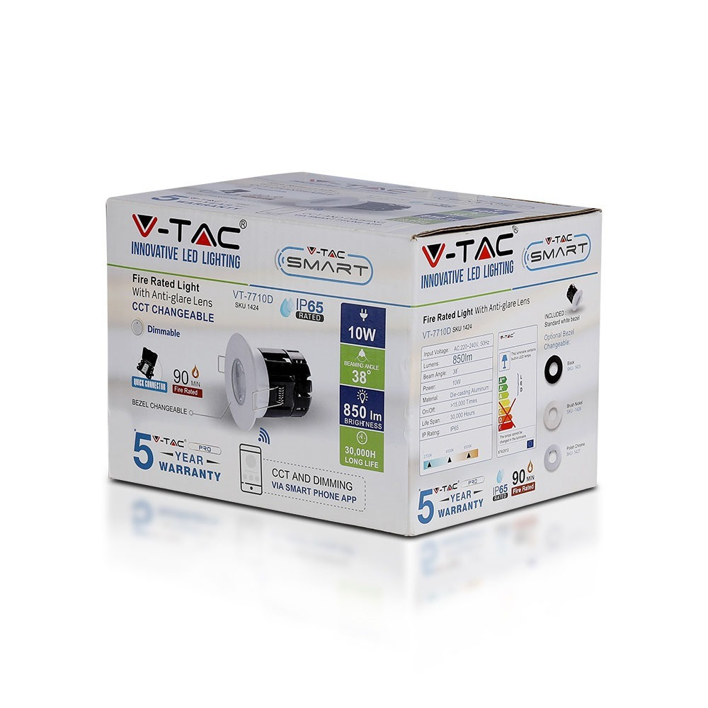 SMART Tűzálló spot lámpa, 10w, CCT, 850lm, 38°, dimmelhető, IP65, V-TAC, 1424