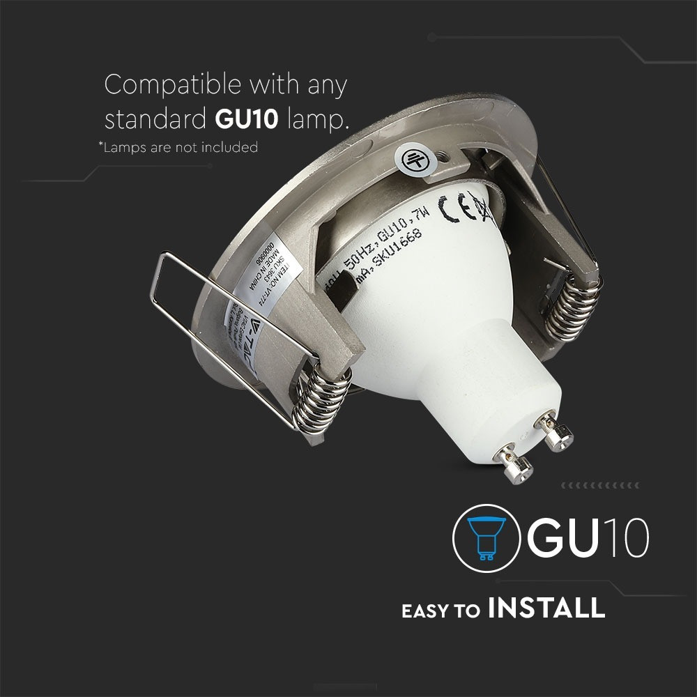 LED spotlámpa keret kerek, GU10, szatén nikkel, V-TAC, 3643