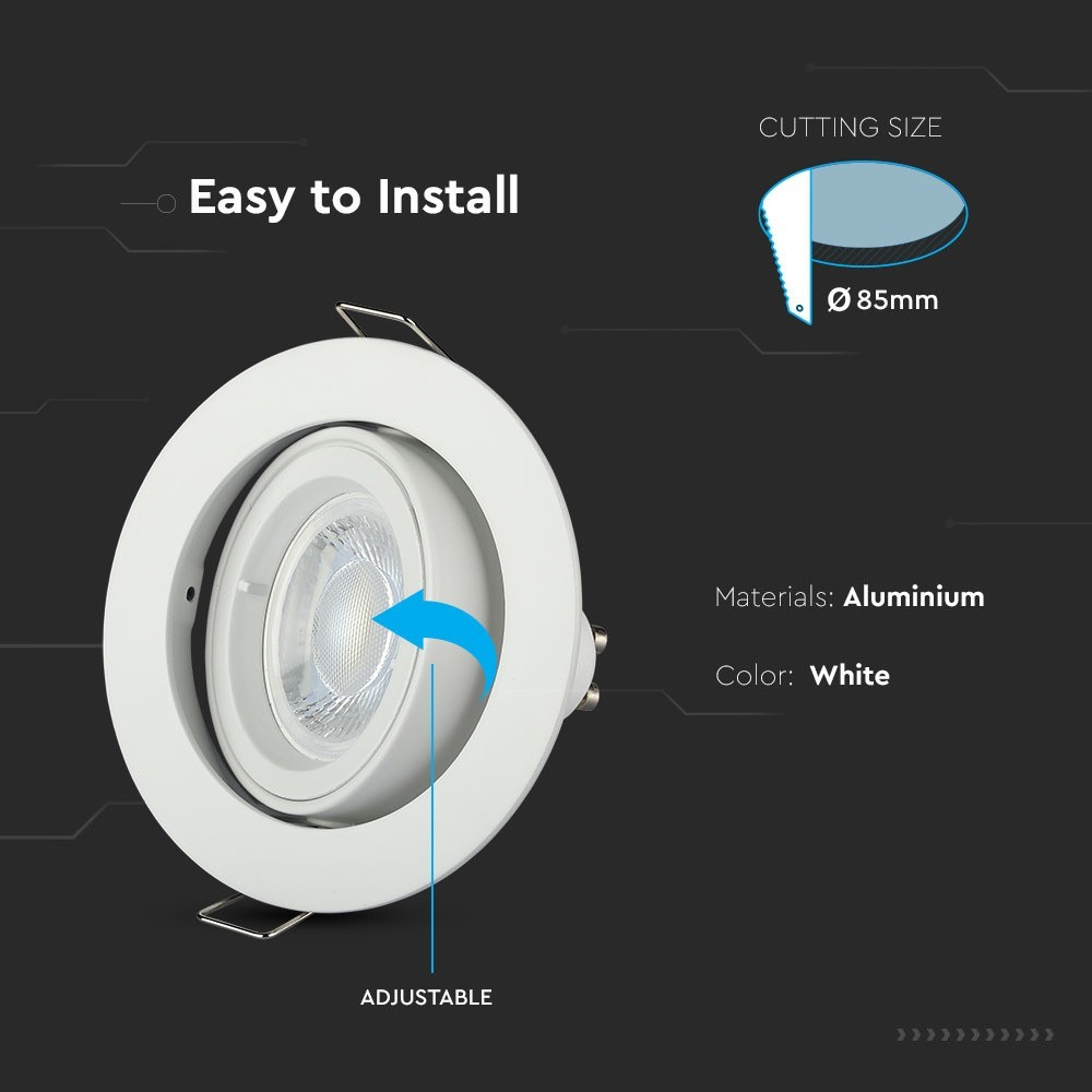 LED spotlámpa keret kerek, GU10, fehér, V-TAC, 3645