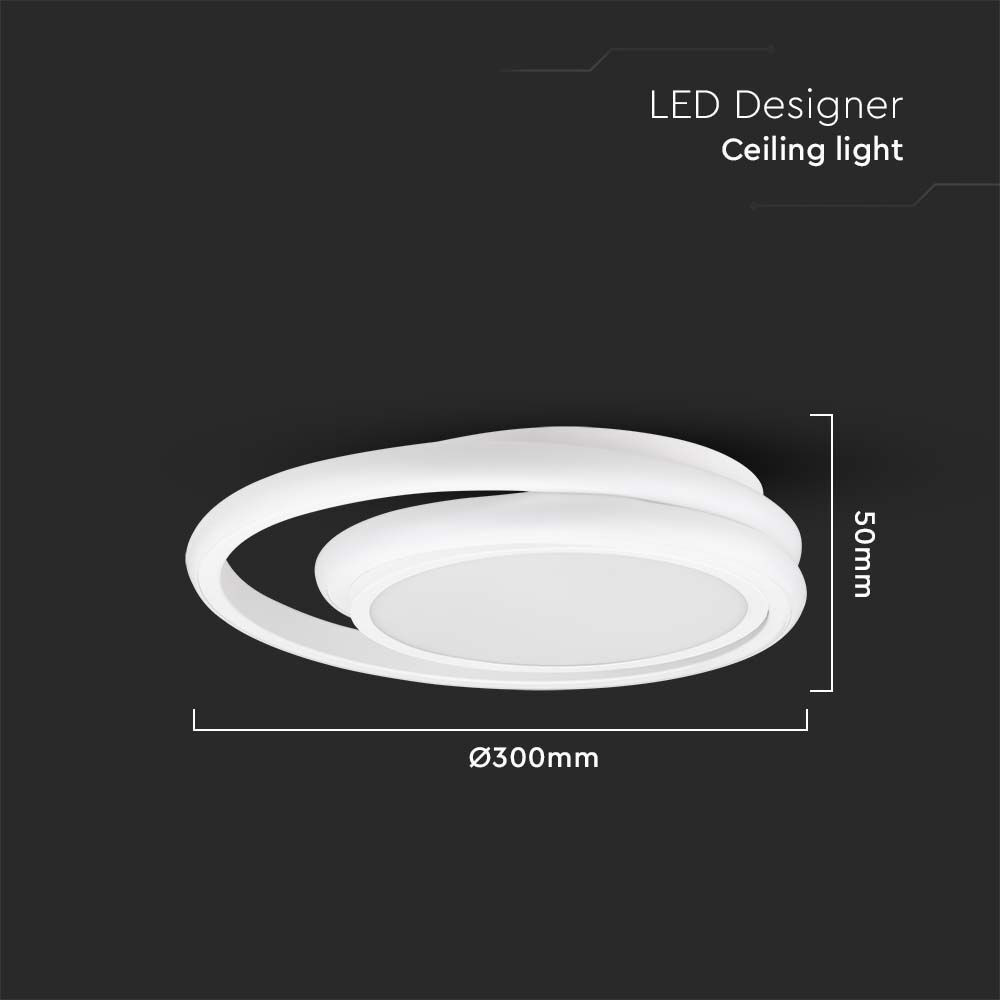 Design mennyezeti lámpa, 24w, 4000K, természetes fehér, 2560lm, fehér, V-TAC, 6995