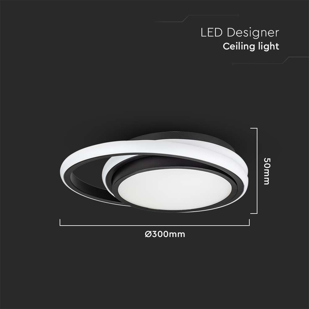 Design mennyezeti lámpa, 24w, 4000K, természetes fehér, 2560lm, fekete, V-TAC, 6994