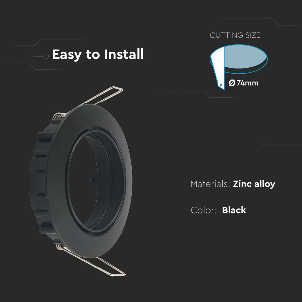 LED spotlámpa keret kerek, GU10, fekete, V-TAC, 8955