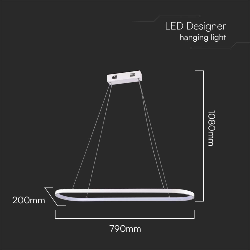 Designer függeszték, 24w, 3000K, meleg fehér, 2760lm, 120°, fehér, CRI>80, V-TAC, 10056