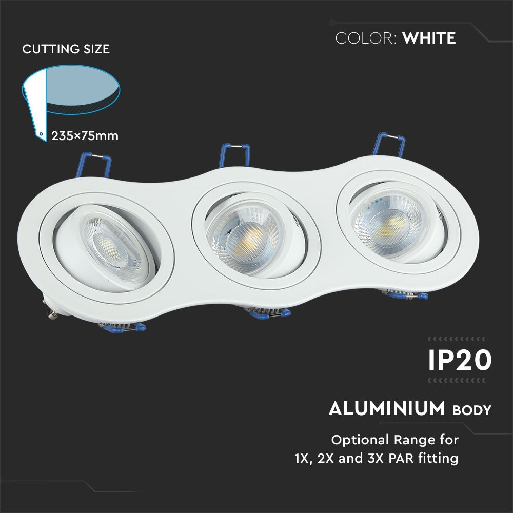 LED spotlámpa keret kerek, 3XGU10, fehér, V-TAC, 3603