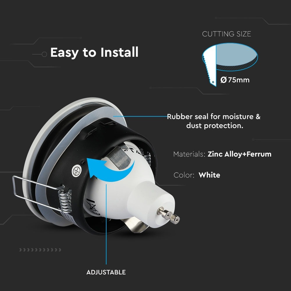 LED spotlámpa keret kerek, GU10, fehér, IP54, V-TAC, 3613