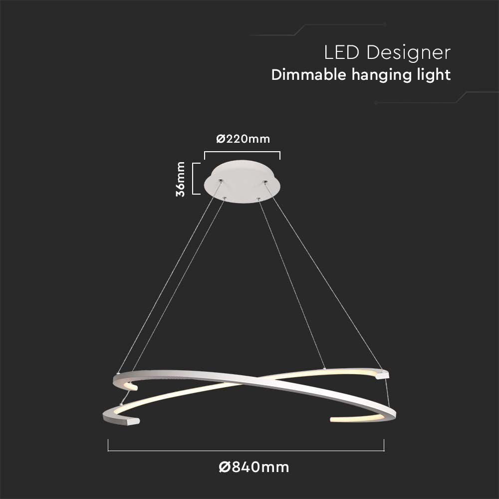 Designer függeszték, 48w, 4000K, természetes fehér, 5150lm, fehér, CRI>80, dimmelhető, V-TAC, 14987