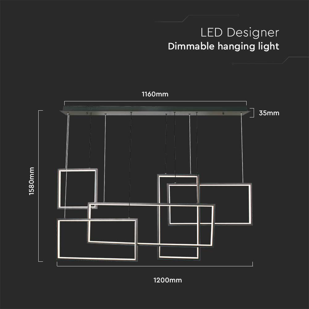 Designer függeszték, 45w, 3000K, meleg fehér, 4800lm, fekete, CRI>80, dimmelhető, V-TAC, 15344