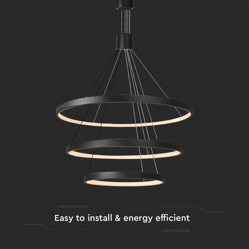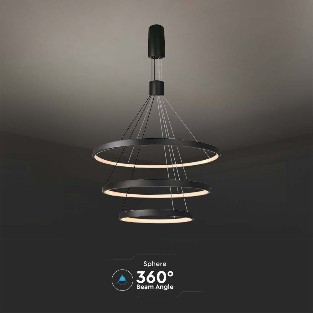 Designer függeszték, 46w, 3000K, meleg fehér, 4900lm, fekete, CRI>80, dimmelhető, V-TAC, 15345