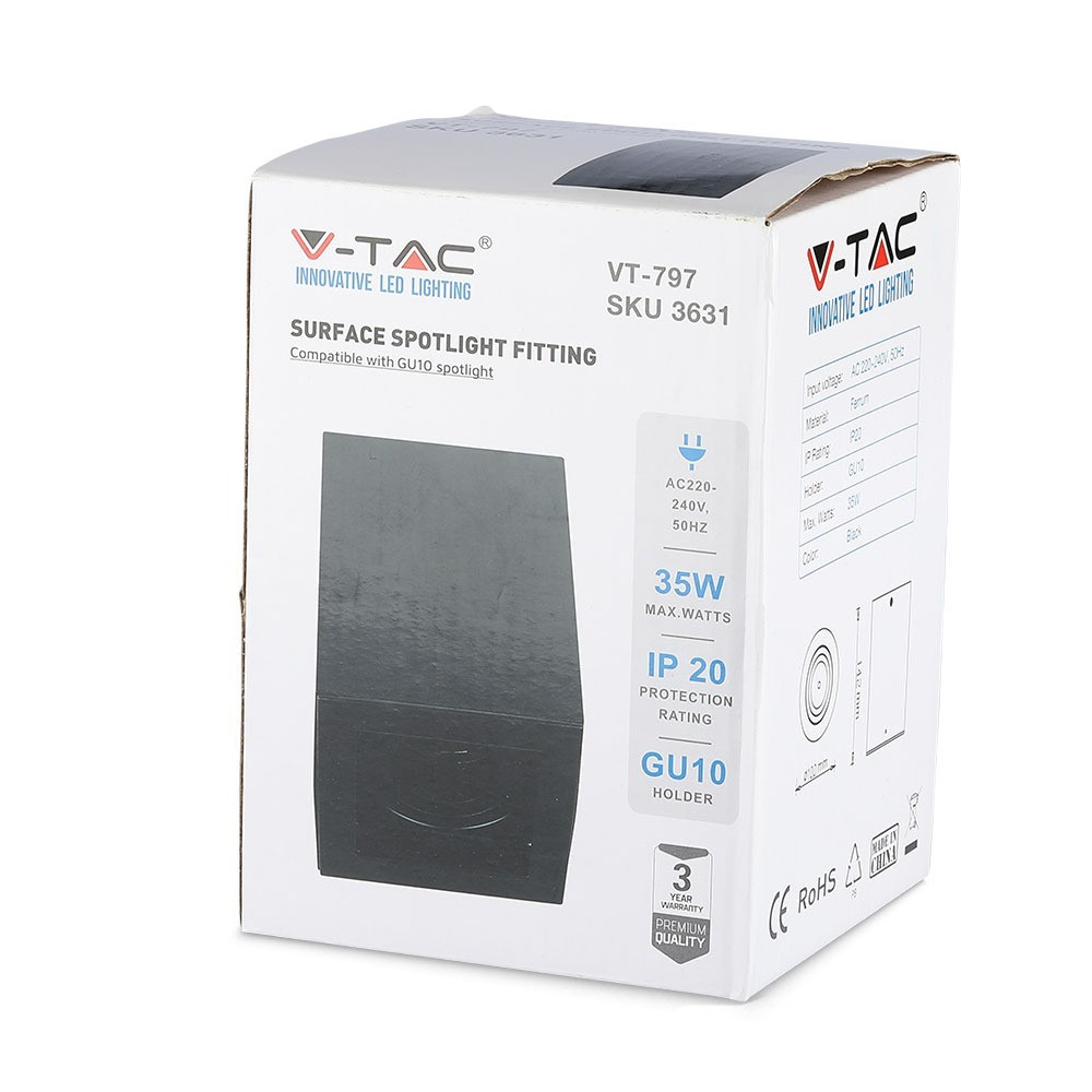 LED négyzet alakú mennyezeti lámpatest, GU10, fekete, V-TAC, 3631